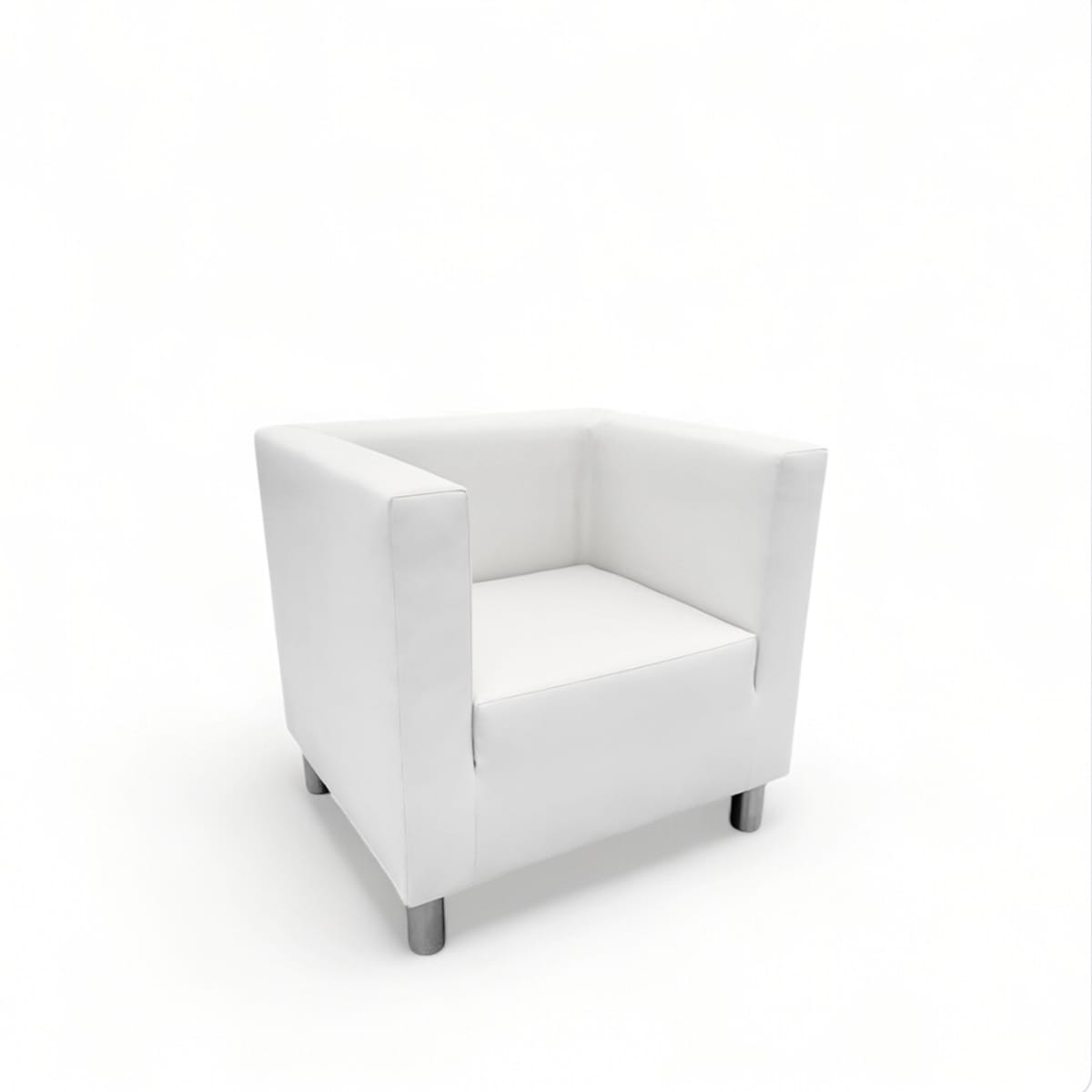 Poltrona posto singolo in pelle di colore bianco, piedini cromati.